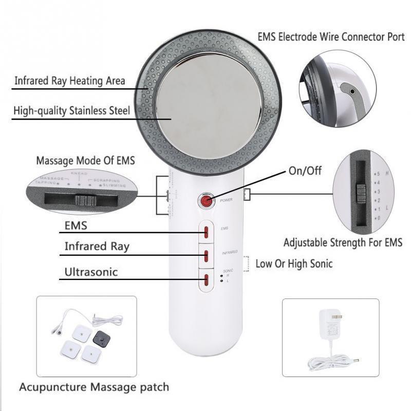 Aparelho de massgem de cavitação ultrassônica - produz calor infravermelho para incentivar o fluxo de sangue sob a camada exterior da pele.